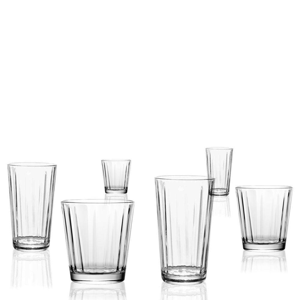 Um copo elegante com um design refinado e inovador, inspirado nas formas dos troncos das árvores. Perfeito para servir água, coquetéis, uísque e destilados, aperitivos e sucos de frutas.