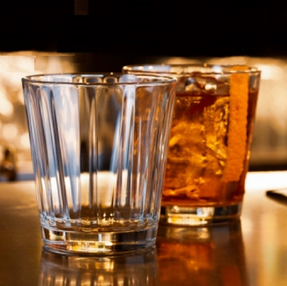 Um copo elegante com um design refinado e inovador, inspirado nas formas dos troncos das árvores. Perfeito para servir água, coquetéis, uísque e destilados, aperitivos e sucos de frutas.
