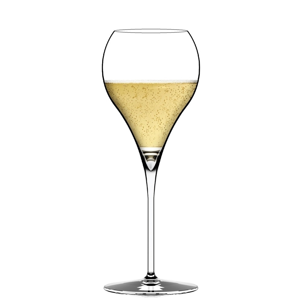 Este cálice é caracterizado por uma piqûre profunda e um ponto de perlage interior que favorece as borbulhas de gás carbônico.