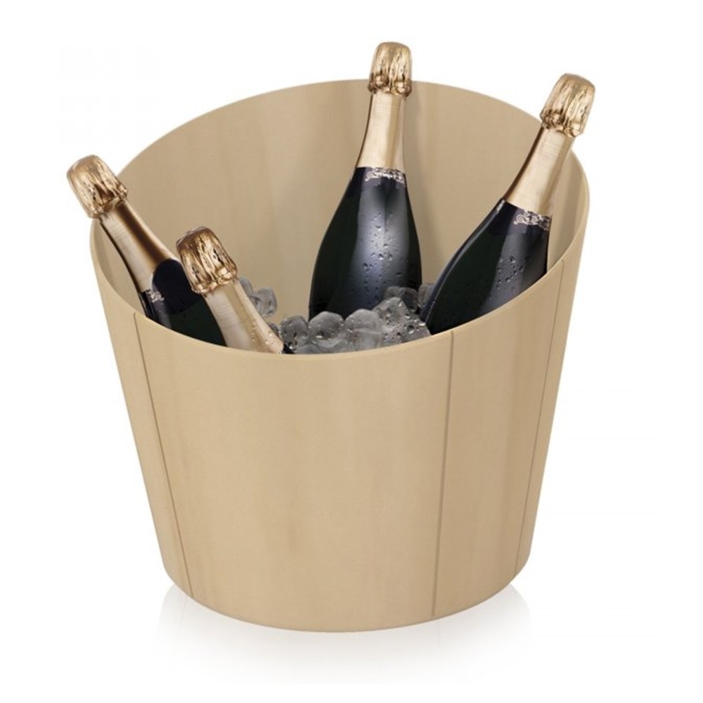 A madeira combina um design elegante, linhas minimalistas e sofisticadas com um material ecológico e inovador chamado Eco Wood. Esta champanheira de madeira vem com uma estética sofisticada cujas características, como o acabamento e a cor natural, lembram os barris de carvalho, evocando assim a beleza dos materiais naturais.