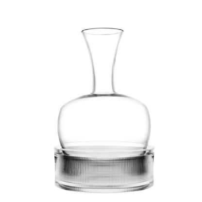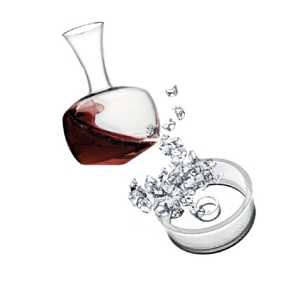 O Alavin é um decantador “resfriador” que pode ser deixado livre para girar na mesa para oxigenar vinhos tintos envelhecidos ou também ser colocado na base de gelo para manter o vinho na temperatura correta, já que ele é caracterizado por uma base basculante. Muitas vezes, os vinhos tintos são servidos a uma temperatura muito alta, tornando a degustação inadequada.