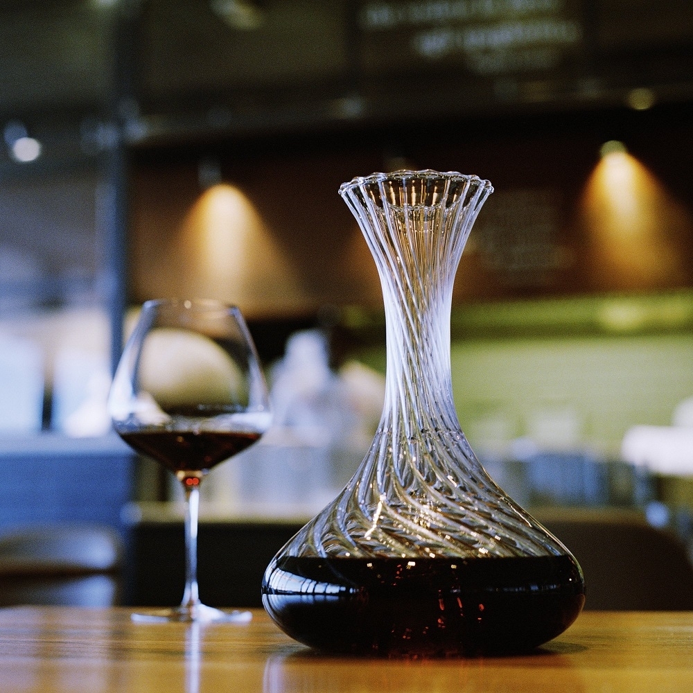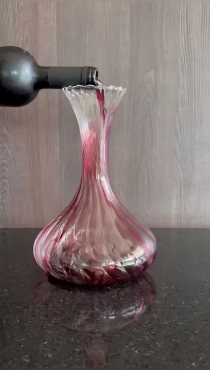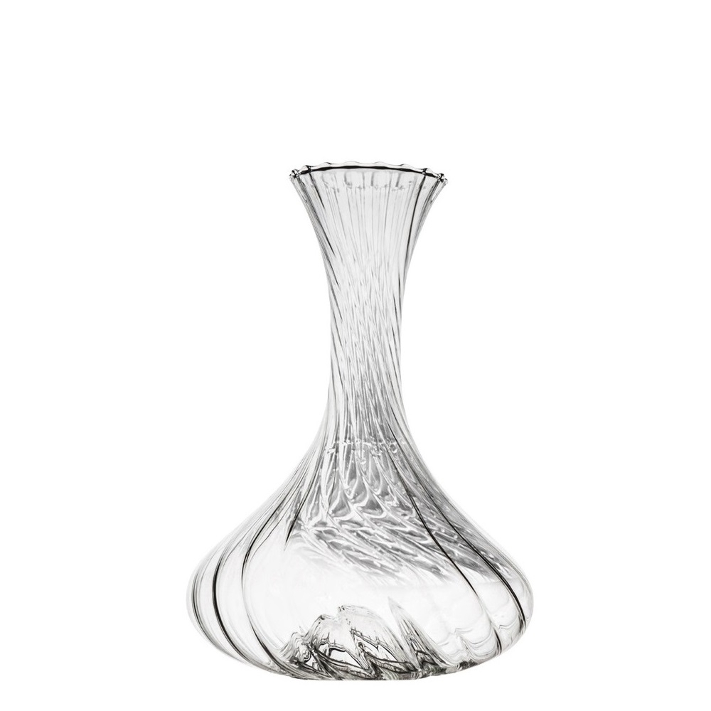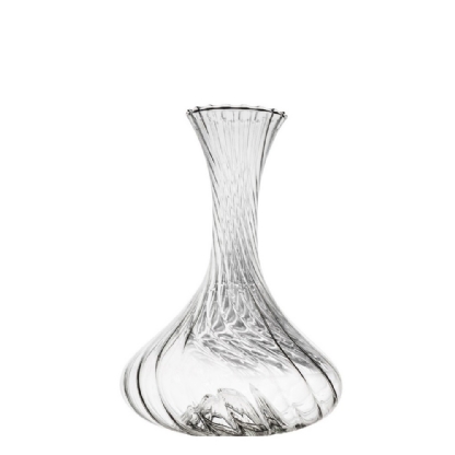 Este Decanter combina um design em espiral com um refinamento, e é soprado artesanalmente. Foi projetado para conseguir uma oxigenação ideal do vinho, sendo exaltado e servido à mesa com sutileza e vivacidade.