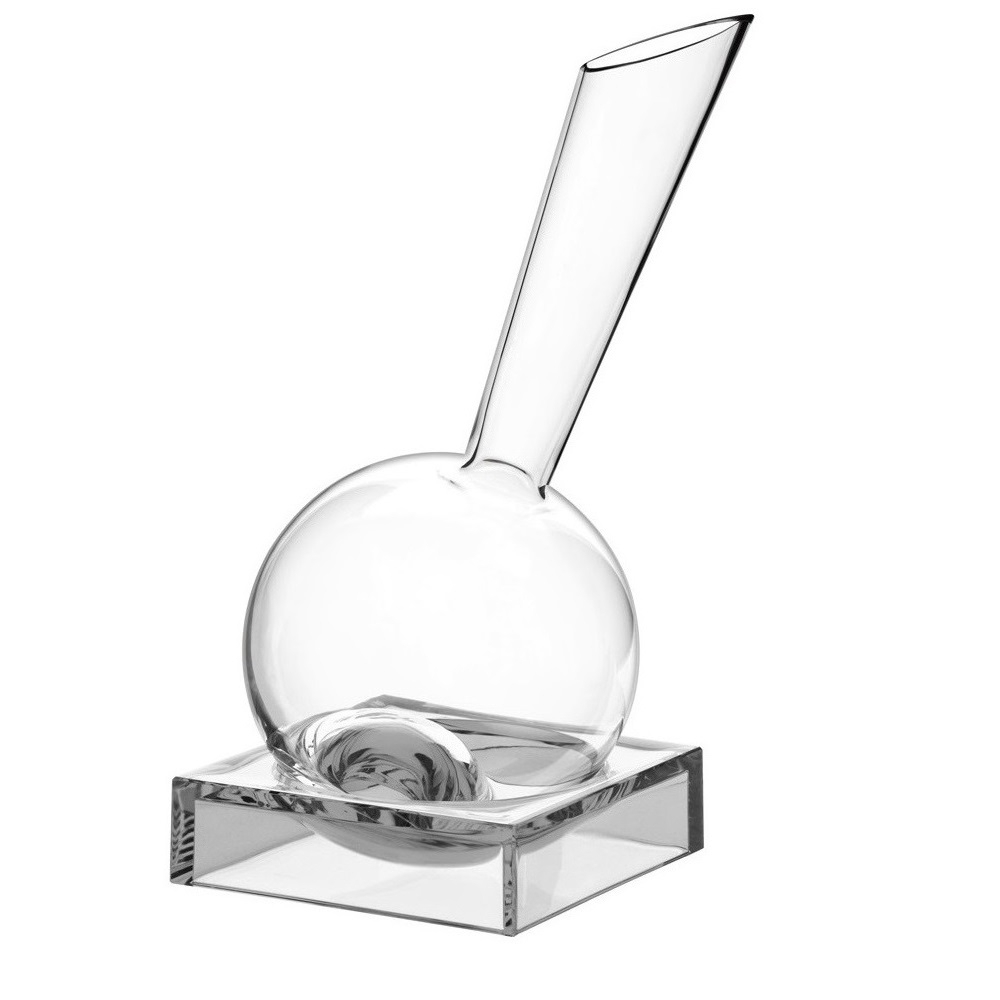 Cor: Transparente. Capacidade: 1.500 mL. Altura: 360 mm. Diámetro máximo: 160 mm. Material: Vidro cristalino assoprado; Base de acrílico. Uso recomendado: Para oxigenação de vinhos tintos. Mercado de referência: Retail, Ho.re.ca, B2B, e Pessoa física. |